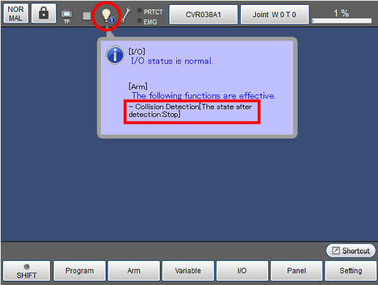The enable state of collision detection function can be checked by pressing the light bulb icon of Remote TP/Virtual TP.