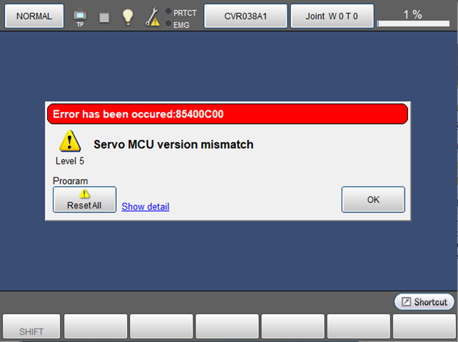 When the version of the control MCU of electric gripper is older than the control MCU of COBOTTA Unit, error [0x85400C00 : Servo MCU version mismatch] occurs.