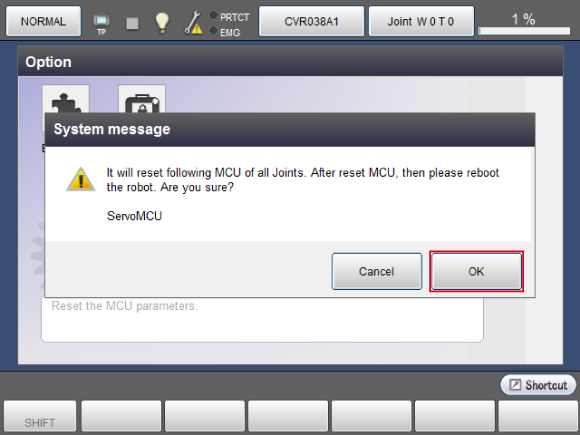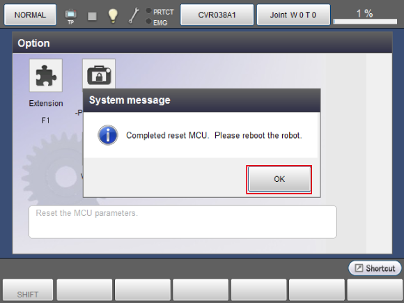 After reboot, press [F10 MCU Reset] in the [Option] window of Remote TP/Virtual TP.