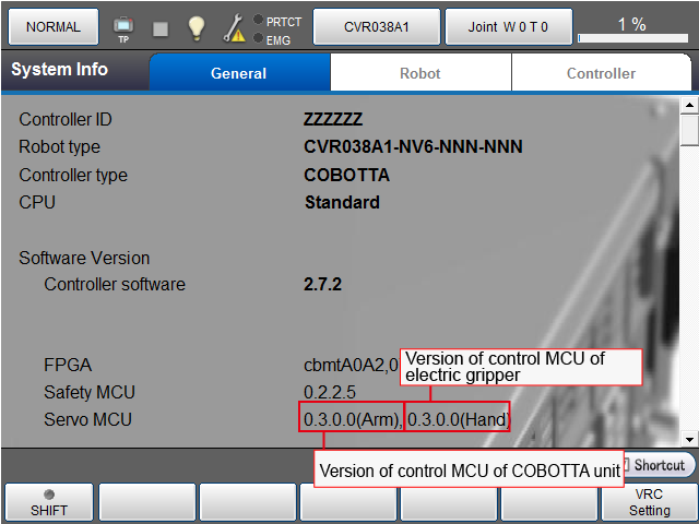 The procedure to check the version is different for COBOTTA Ver.2.7.0 or older. Refer to this section (PDF:1,874KB).