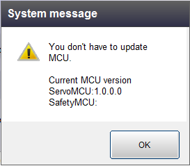 If [F9 MCU VersionUp] is pressed when the version upgrade is not required, the following system message will be displayed.