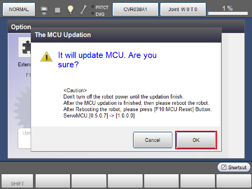 MCU version upgrade function performs the version upgrade of the control MCU of electric gripper when the version of control MCU of electric gripper is lower than the control MCU of COBOTTA Unit.