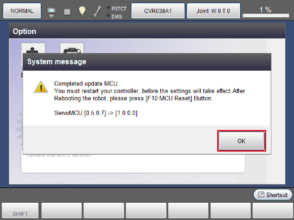 Press [F9 MCU VersionUp] in the [Option] window of Remote TP/Virtual TP.