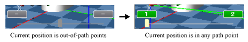 If the current position is out-of-path points, when the path point setting window appears, the path number icon is colored gray. If the current position is in any path point, the path number icon is colored green. (Ver.2.7.* or higher)