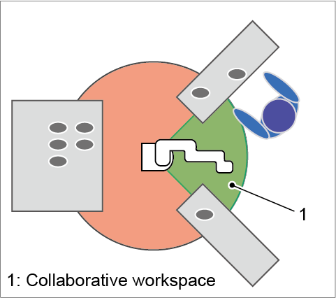 To perform the collaborative operation, before starting operation, you must determine the area which is treated as a collaborative workspace within the robot system, and inform operators of it.