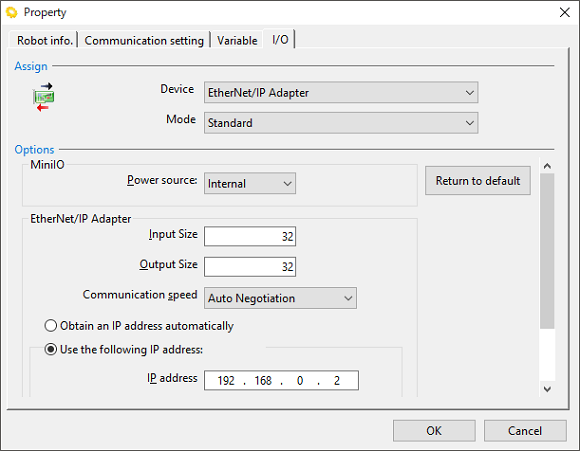 Operation path : [menu] - [Project] - [Property] - [I/O]