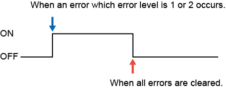 - This signal turns off when I/O command "Clear robot error" is input from an external device and the abnormal condition is cleared.
