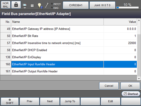 Select [160 : EtherNet/IP Input Run/Idle Header] then click [F4 Edit].