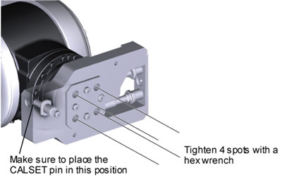 Rotate the CALSET jig clockwise, and then touch the pin to the bolt slightly.