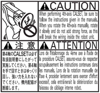 The robot unit has warning and caution labels pasted as shown below. They alert the user to the dangers of the areas on which they are pasted. Be sure to observe the instructions printed on those labels.