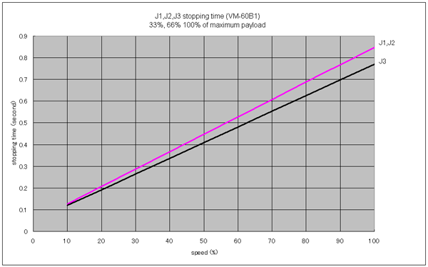 J1, J2, J3 Stopping Time vs. Speed at an Emergency Stop (VM-60B1 series)