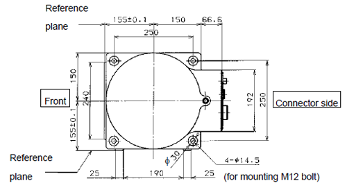 Drill four bolt holes (M12) 15-mm deep or more in the robot mount where the robot unit is to be secured, according to the dimensions shown below.
