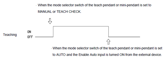 This signal is used to inform an external operating panel that the robot is teaching when they are installed separately from each other.