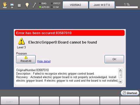 The message shown below appears. Press [OK] then reboot the robot controller.