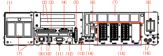 | 2 | - | Expansion board slot (2 slots) | Install expansion board. PCI board is installed to upper slot and PCI Express board to lower slot. |