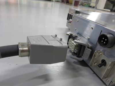 Check positional relationship of three connectors of motor cable. Each connector has a tag. Connect each cable according to tags.