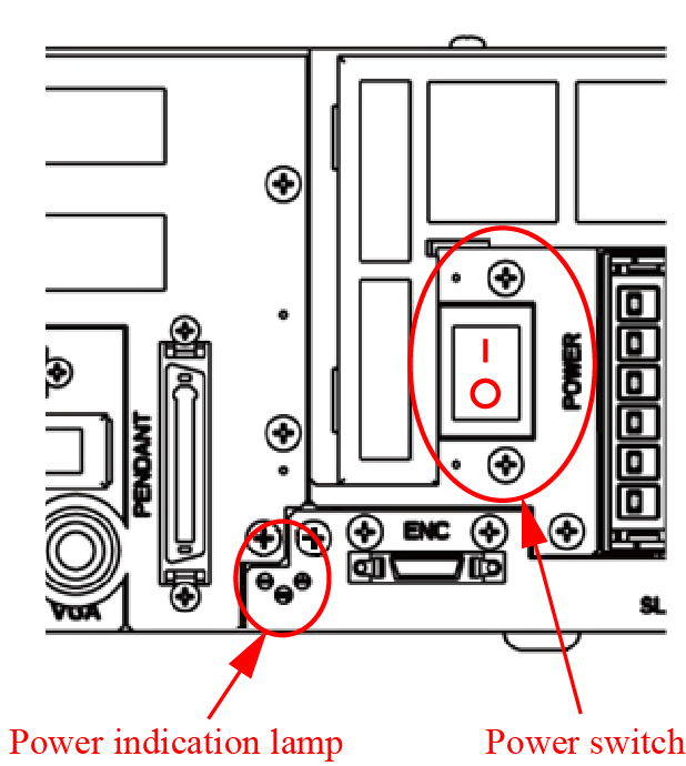 When the robot is turned on, the power lamp (leftmost of the three pilot lamps) in the figure below lights up. When it is turned off, the pilot lamp goes out.