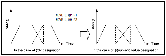 Therefore, if designated with "@numeric value," the deceleration is reduced and the movement time may be longer.