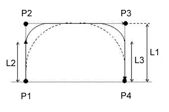 Further, it is easy to program the arch motion control. It is necessary to define only the move distance of the Z axis from P3 to P4 (L1), the distance from P1 to the arch start position (L2), and the distance from P4 to the arch end position (L3).