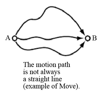 If "P" is specified when designating the interpolation method with the motion control command (with 0 or more specified as the robot figure), the robot executes the PTP motion.
