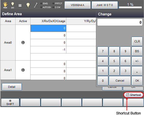 Press [Shortcut] button in any process screen to display [Shortcut menu] window.