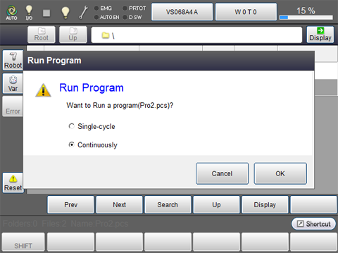 Select the program to start by using cursor key or jog dial, or by directly touching the screen.