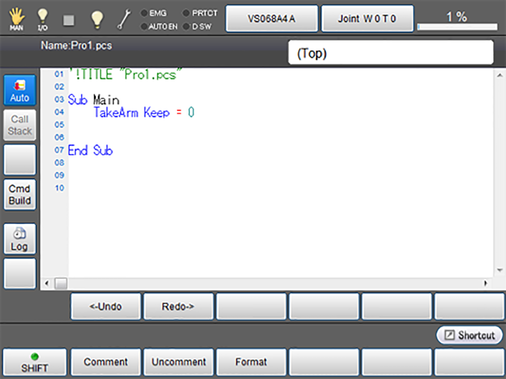 Cancel to comment out for the line that is commented out in the program. Select the line to cancel to comment out, and press [Uncomment] to cancel it. |
