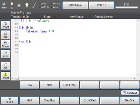 | [F4 CycleStart] | Single-cycle start of the program being executed. |