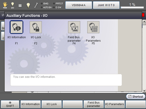 Press [F6 Aux] to display the following [Auxiliary Functions - I/O] window.