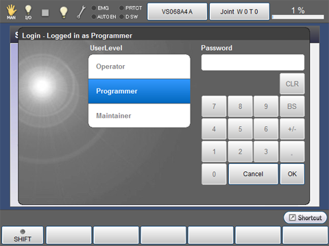 After selecting the user level to login, enter password with ten key, and press [OK] to login with the specified user level.