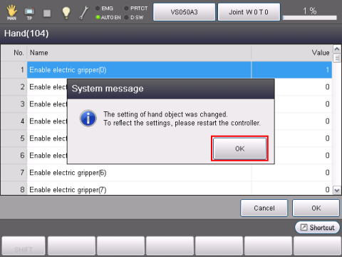 Press [OK] then reboot the robot controller.