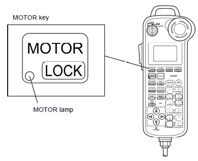 Before turning the motor on, be sure to confirm no person(s) is in the restricted space of the robot.