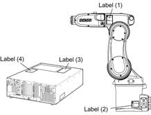 The robot unit and controller have warning labels. These labels alert the user to the danger of the areas on which they are pasted. Be sure to observe the instructions printed on those labels.