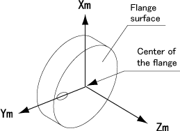 Zm: Normal axis on the center of the flange surface Ym: Axis passing through the flange center and orientation key hole Xm: Axis passing through the flange center and crossing Zm and Ym at right angles |