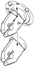 ROTATEH command controls rotation around the Z axis of the tool coordinates. You can arbitrarily define the Z-axis orientation in the tool coordinates, allowing you to easily control the end-effector. The figure below shows an example of the tool coordinates definition.
