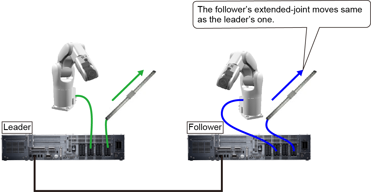 When extended-joints are used, an extended-joint on the follower moves the same motion distance as that of the leader.