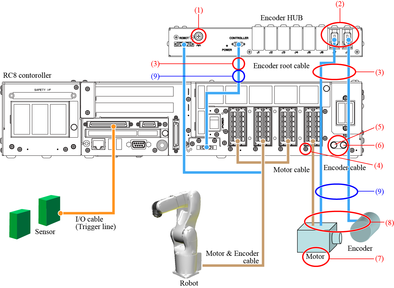 (9) Check if an encoder data error happens when moving or striking a cable.