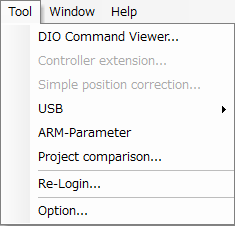 This menu allows to set DENSO robot option functions by using WINCAPSIII. This is available only in the online monitoring mode.