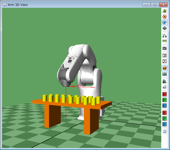The following is the procedure for adding the pallet bench, pallet, work pieces, and other objects to the Arm 3D view window.