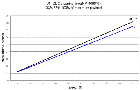 J1, J2, Z Stopping Time vs. Speed at an Emergency Stop (HM-4085*-W)