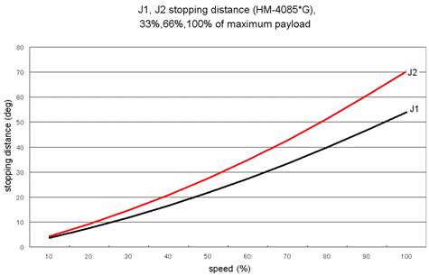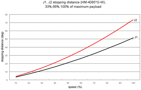 J1, J2 Stopping Distance vs. Speed at an Emergency Stop (HM-4085*-W)