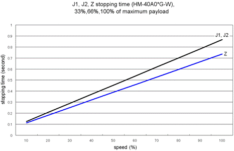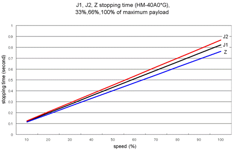 J1, J2, Z Stopping Time vs. Speed at an Emergency Stop (HM-40A0*-W)