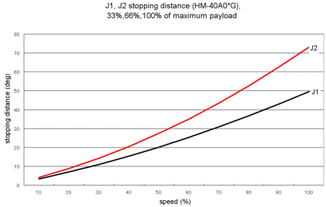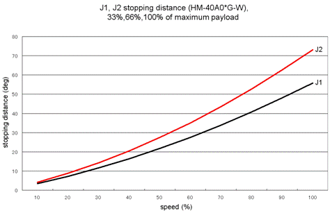 J1, J2 Stopping Distance vs. Speed at an Emergency Stop (HM-40A0*-W)