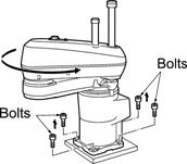 When worker A is removing those bolts, worker B should support the 1st-axis arm to prevent the robot unit from overturning.