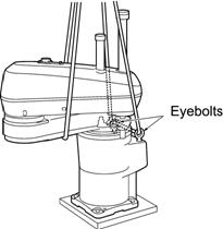 Transport the robot unit to the mounting position using the crane and eyebolts.
