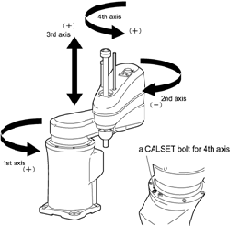 2. After CALSET, confirm in the manual mode that each axis stops at the software motion limit before coming into contact with the mechanical end.