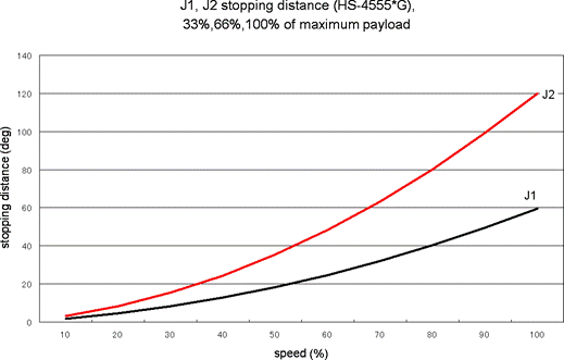 J1, J2 Stopping Distance vs. Speed at an Emergency Stop (HS-4555* series)