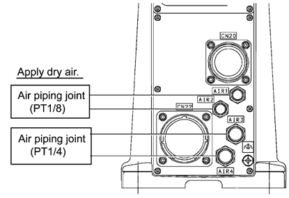 The robot unit is equipped with four air pipes (two of 4 mm and two of 6 mm in diameter) for controlling hands. The maximum of the source air pressure is listed below.