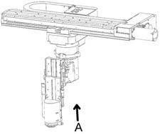 From the factory, the mechanical stop bolt on the XR series robot is mounted at the 180° position of the 2nd axis (R-axis) as shown below.