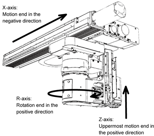 | Z-axis (3rd axis) | Uppermost motion end (in the positive direction) | |